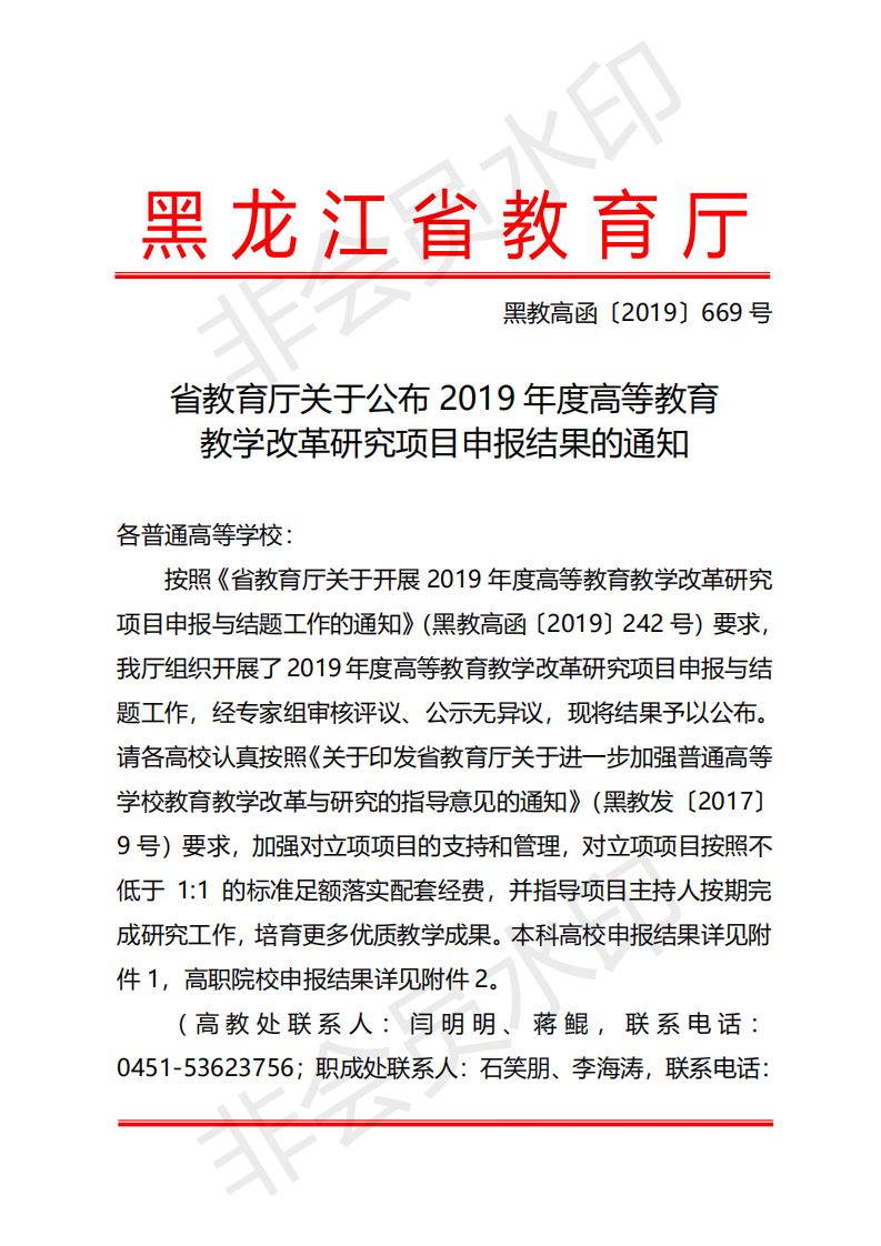 省教育厅关于公布2019年度高等公司产品改革研究项目申报结果的通知