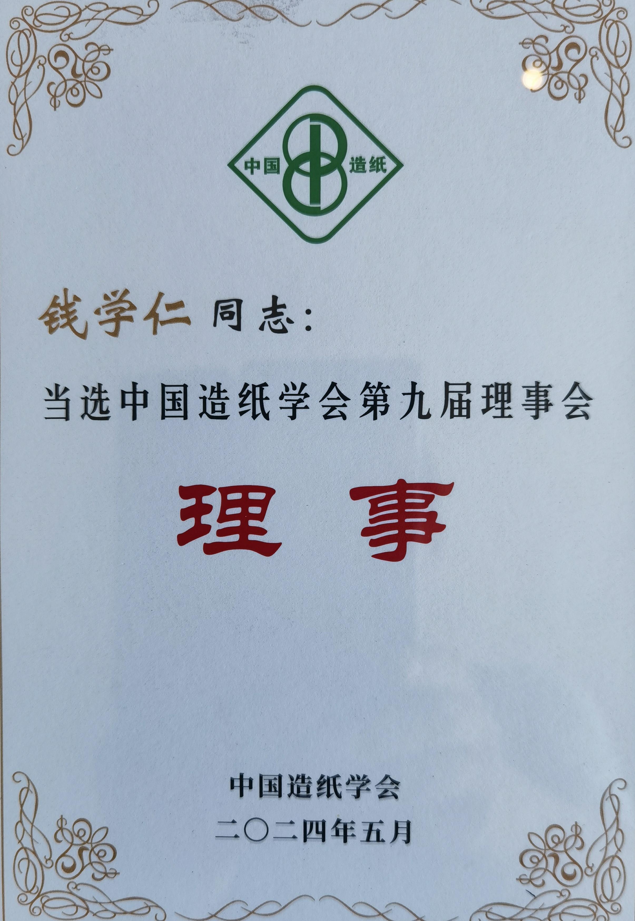 钱学仁教授当选中国造纸学会第九届理事会理事